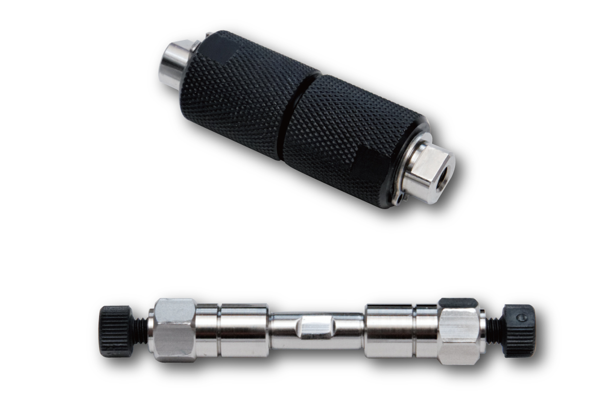 The Ghost Trap DS is like a cartridge-type column that is inserted into the LC line to eliminate the ghost peaks inherent in the instrument. It offers great benefits in our work by eliminating the need to change the analytical method or gradient program pattern. The Ghost Trap DS can be connected just downstream of the mixers to clean up the mobile phase solvent before it enters the column in order to handle the ghost peaks that arise after the solvent and buffer are mixed together.
