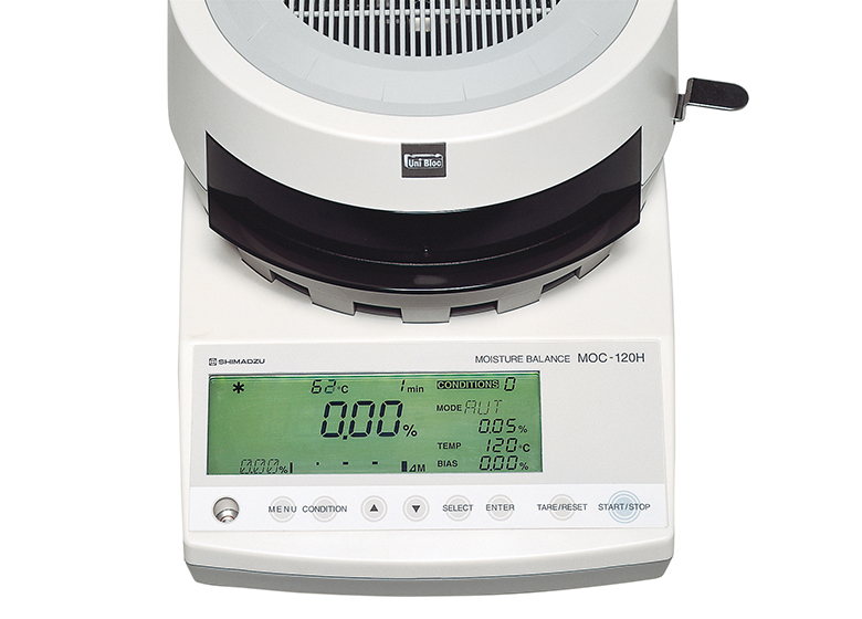 The moisture content of a variety of samples can be measured using an array of drying modes. The drying status can be seen at-a-glance with the fluctuation range display. Active in a variety of fields (cereals, starch, flour, noodles, brewed products, sea foods and marine products, meat products, spices, sweets, dairy products, dried foods, vegetable oils and other food articles; pharmaceuticals; ores; cokes; glass materials; cement; chemical fertilizers; pulp and paper; cotton; various fabrics and other industrial goods); enabling measurement of samples (cereals, foods, and chemical products) under various conditions (powder, particles, paste, and liquid).